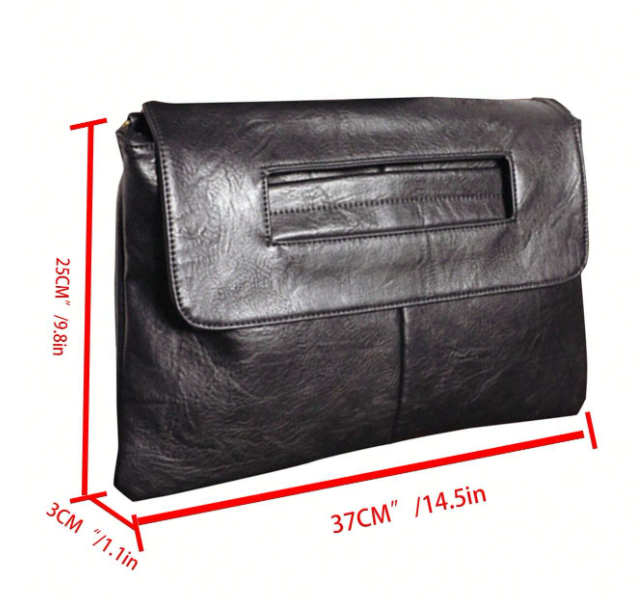 Faux leather clutch bag with multiple storage pockets & shoulder strap