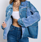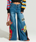 Oversized denim flare jeans with exciting patchwork, sequins & pearls
