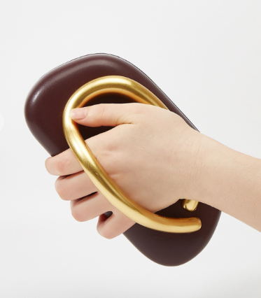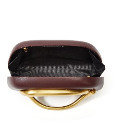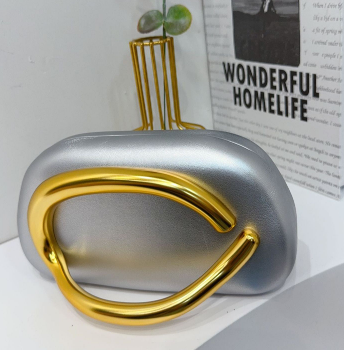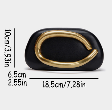Faux leather clutch with metal shoulder strap