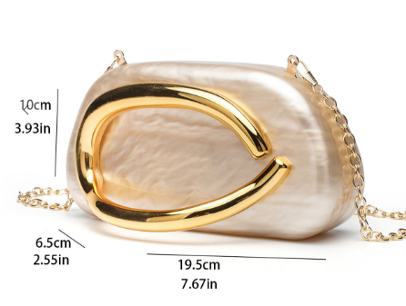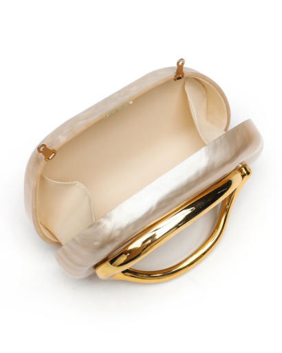 Hard plastic marble clutch handbag with metal shoulder strap