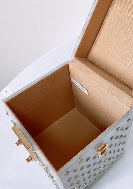 Hard plastic marble handbag with bling design & metal shoulder strap