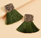 Beaded dangle earrings with fabric flowers and glitter hearts